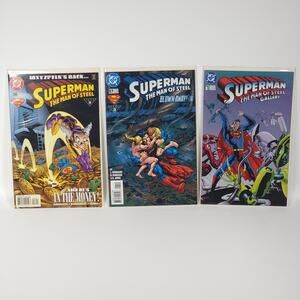Nine-book lot from Superman: The Man of Steel Vol. 1 (DC Comics, 1995–96). Written by Louise Simonson and Roger Stern, this run features powerful new enemies and intense storylines, including Superman's struggle to protect Metropolis and uncover the fate of his family. Includes one-shot Gallery issue and eight core series issues.