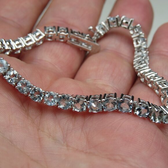 9 CARAT Aquamarine Sterling Silver Bracelet Hand Crafted 7"