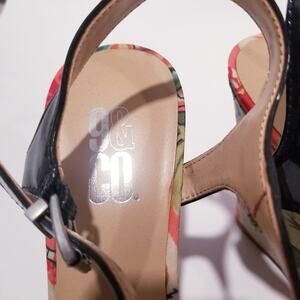 9 & Co Floral Print Jabrielle Wedge Sandals