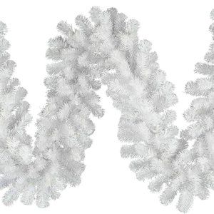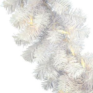 Flocked features: This Crystal White Spruce Garland features a luscious blend of white PVC tips to create a full and realistic look. This garland is 9' by 12".