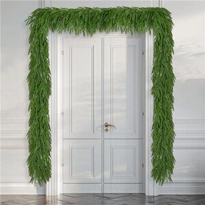 🧿【Flexible & Easy to Shape 】: Designed with flexibility in mind, these faux greenery garlands can be easily bent, twisted, or draped to fit any space. Whether wrapped around a banister, draped over a fireplace mantel, or woven along a stair railing, they keep their full, realistic shape beautifully.
