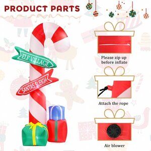 Perfect Christmas Decorations Place 9 Ft Tall Christmas inflatable outdoor decorations in your yard, and this cute inflatable candy cane with road sign and Christmas bags bring a visual impact instantly and bring a strong Christmas atmosphere