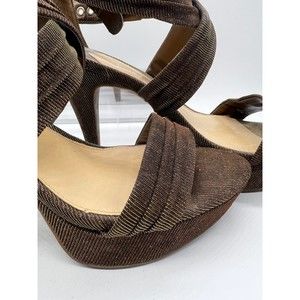 9 Gianni Bini GOLD Glittery Strap Sandal 4” High Heel Open Toe Platform Sling