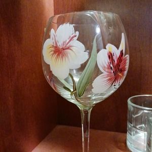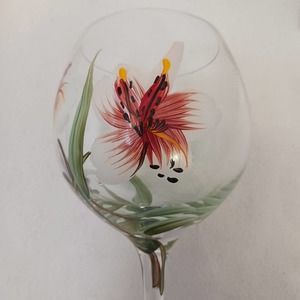 Artisan HAND PAINTED WINE GLASS Hawaiian Hibiscus Lilly Flowers 9" Goblet