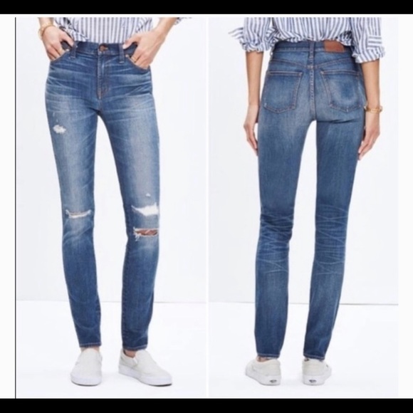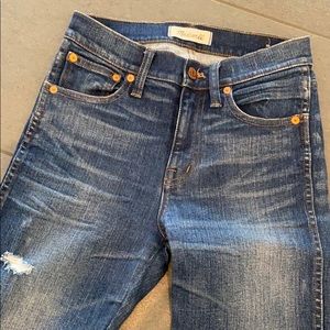 Madewell 9" High Rise Skinny Jeans in Rip Repair. Size 25. Excellent used condition the hem is raw.