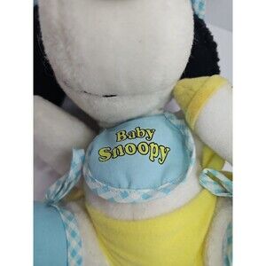 The 9" Knickerbocker Peanuts Baby Snoopy plush hat bib baby bottle from the 1970s is a charming collectible item for fans of the Peanuts franchise. Made with plush material and featuring the beloved character Baby Snoopy, this vintage piece is sure to bring a touch of nostalgia and whimsy to any collection. The unique design and high-quality construction make it a special addition to any animation merchandise or memorabilia collection.