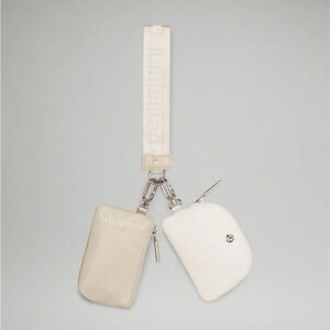 9 🆕 Lululemon Dual Pouch Wristlet Wordmark Raw Linen White Opal