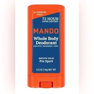 9 Mando Deodorant Stick for Men, Trial Size, Smooth Solid, Aluminum Free, Pro Sport Scent, 0.5 oz SMELL BETTER EVERYWHERE - Whole Body Deodorant for pits, packages, feet, and beyond. Put it anywhere you have odor but wish you didn’t.
