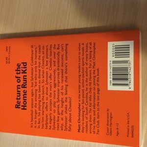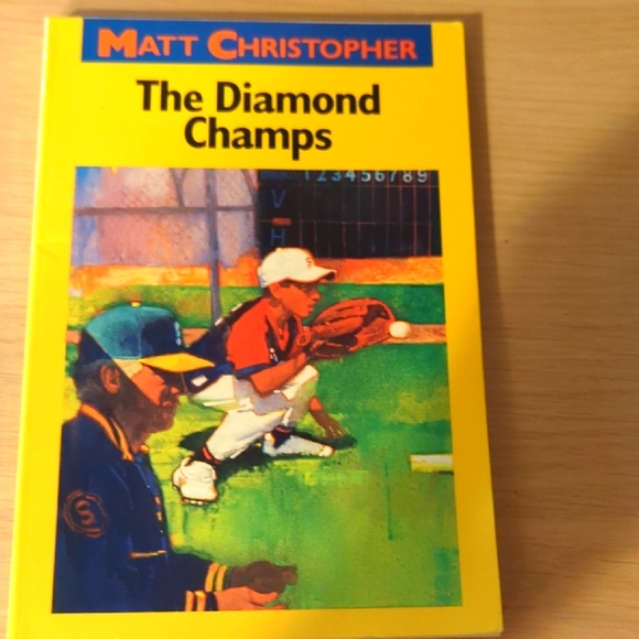 Here is a list of the titles The diamond champs, the submarine pitch, look who's playing first base, baseball pals, return of the home run kid, the kid who only hit homers, no arm in left field, little Lefty, and the last one is Challenge at Second Base. These books are adventures playing baseball. Matt Christopher is the author.