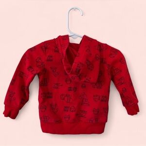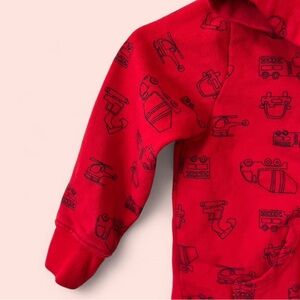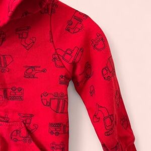 0-3 months, 3 months, infant, baby, red, cats, trucks, hoodie, sweater, 3-6 months, 6 months, 6-9 months, boy, infant, spring, fall, winter, layering, warm, EUC, 9 months.