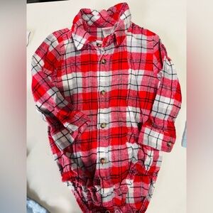 9 Months Baby Boy Red Plaid Long Sleeves Collard Shirt with Bodysuit Carter’s