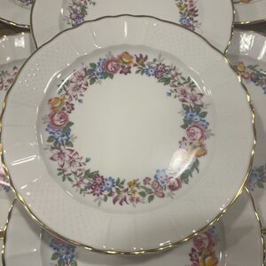 9 NINE Limoges France Bernardaud 7 3/8" salad plates BER57 Floral Garland MINT