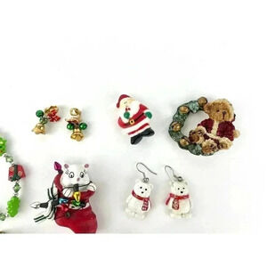 9 PC Christmas Holiday Lot Jewelry Mixed Assorted Earrings Pins Bracelet