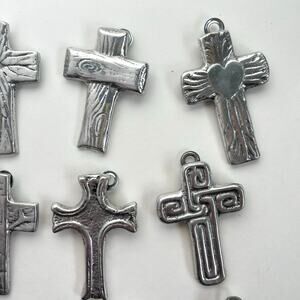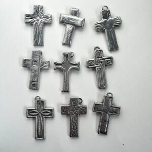 9-Piece Lot Small Handmade Pewter Silver Artistic Religious Crosses 3"