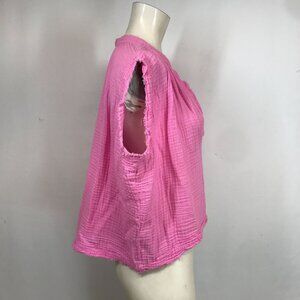 9 SEED- WOMEN'S M/L -PINK V NECK SHORT SLEEVE COTTON CROP TOP