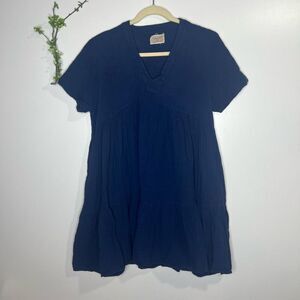 9 Seed Resort El Matador Navy Blue Cotton Tiered Mini Dress Sz Small