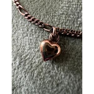 Elegant and timeless, this vintage 9-inch sterling silver anklet features a Figaro chain and a puffed heart charm. Stamped 925 Italy MWS, it is crafted from genuine sterling silver with a warm rose gold tone finish. The piece closes securely with a lobster clasp and has a dainty, feminine look—perfect for summer wear or as a thoughtful gift.