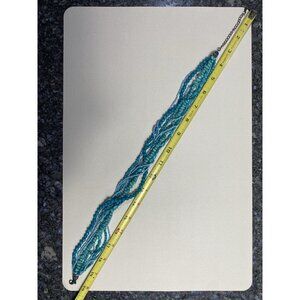 This vintage necklace features 9 strands of beautiful beads in a turquoise style. The necklace is 18” with 3” extension in length. The necklace is designed in a beaded style and has a magnetic clasp. It is perfect for those who love antique jewelry and want to add a touch of history to their collection. This necklace is a must-have for anyone who loves unique and beautiful jewelry.