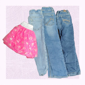This lot of girls' clothing has 9 different types of tops and 3 Jeans and on skirt. Ask any question or shoot us a offer. Thanks for looking and have a great day
