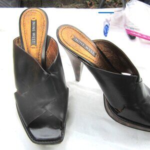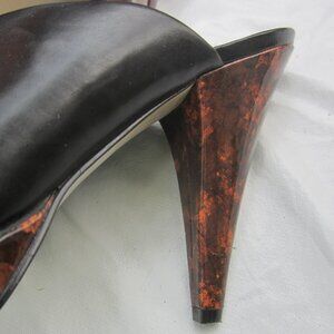 9 WEST NWINGUANTI BLACK LEATHER W/TORTOISE SHELL HEEL CLASSY SHOE