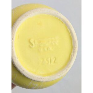 This 9-inch yellow and white splatter vase from the 1960s is a beautiful piece of Shawnee Pottery’s Cameoware line. With a striking flared rim and a signature on the base, this USA-made ceramic vase combines vintage charm with practical elegance, making it a unique display for flowers or a standout decor piece on its own.