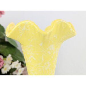 9" Yellow White Splatter Flared Rim Vase Vintage 1960s Shawnee Pottery Cameoware