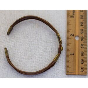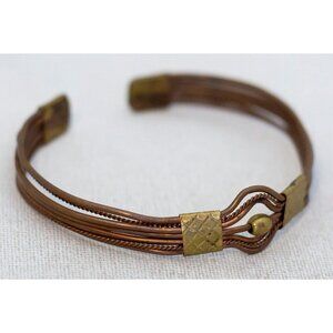 This is a 9 inch cuff bracelet made of brass and copper that has a stylish design.