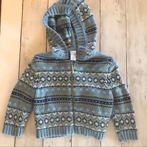 Beautiful brown orange navy green stripe zip up sweater with a hood Oshkosh