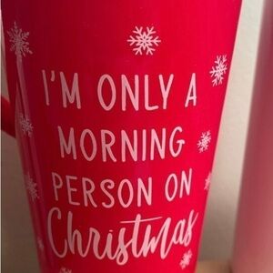 New, 9 piece gift bundle includes: Red 16oz insulated travel mug, 20oz Tumbler with handle, 6 piece Cookie Cutter Set, and a Reindeer Headband! Great Gift idea.