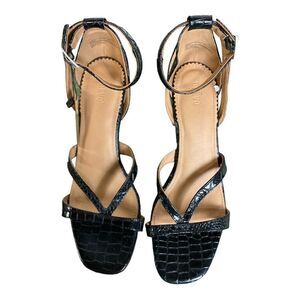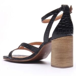 #90 CREVO Kaitlyn 80Snakeskin Black Chunky Heel Sandals