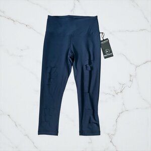 Experience the perfect blend of style and comfort with the 90 DEGREE BY REFLEX Black Distressed Leggings. These medium-sized leggings are brand new, include tags, and feature a trendy distressed design.