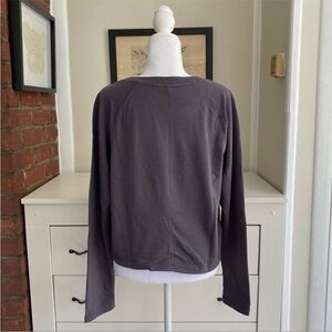 Drop shoulders add a comfortable style to this hi low long sleeve.