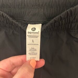 Experience ultimate comfort and style with these black athletic shorts from 90 Degree By Reflex. Designed with a relaxed fit and crafted from lightweight, breathable fabric, they are perfect for both casual wear and athletic activities.