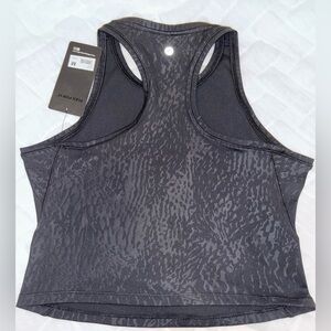 Stylish black sports bra. Sleek design with subtle pattern. Perfect for workouts.