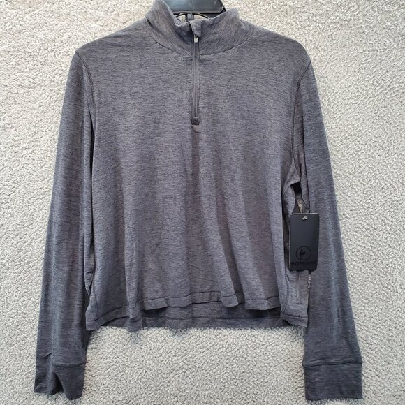 90 Degree By Reflex Cropped Long Sleeve Quarter Zip Heathered Night Sz L New
