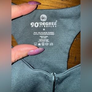 Teal sports bra with front zipper. Racerback design. Comfortable and supportive.