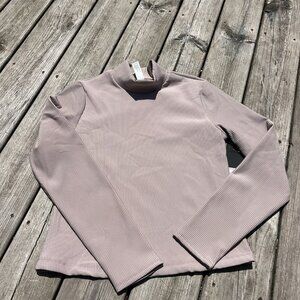 90 Degree By Reflex Womens L Mock Neck Ribbed Performance Long Sleeve NWT Beige