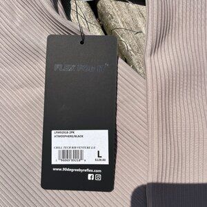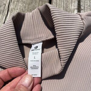 90 Degree By Reflex Womens L Mock Neck Ribbed Performance Long Sleeve NWT Beige‎