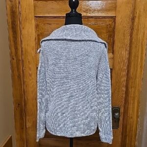 Stylish light gray sweater with a comfortable cowl neck. Perfect for casual outings. Spread collar
