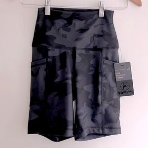 90 Degree Camouflage Black Gray High Rise Biker Shorts Pockets Size XS NWT!