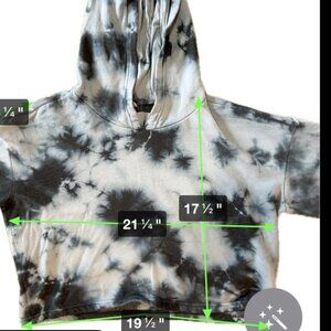 90 Degree Cropped Long Sleeve Blue Tie-Dye Hooded Sweatshirt Woman Large 1601