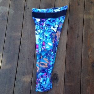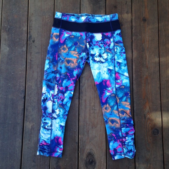 Beautiful blue flower print leggings. With some pink and orange accents. Very comfortable to workout in and squat safe, no show through. Worm a handful of times but still look great. fit true to size.