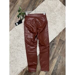 Dark madder, faux leather, high waisted, seamless waistband, fleece lined
