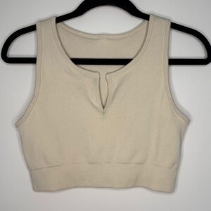 90 Degree by Reflex Seamless Raya Crop Tank Top Cream Beige Ribbed Size L Active
