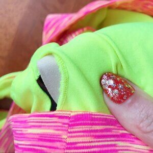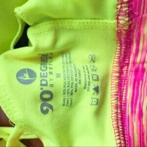 90 Degree by Reflex Neon Yellow Strappy heathered Yellow and Pink Sports Bra in a size medium. EUC with an entire life left to live. Great to wear alone as a statement sports bra or as a peek-a-boo bra. Trendy neon color to go along with all of the 90s feels. Great addition to add to an Athleisure collection. Workout, running errands or lounge around the house. Zoom to see intricate details/wear in photos and ask questions prior to purchase.