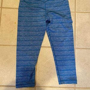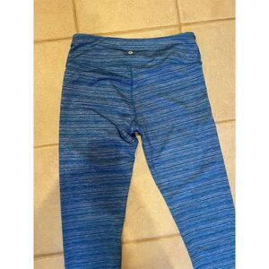 Keywords: 90 Degree by Reflex, capri leggings, women's activewear, light blue, space dye, polyester, spandex, moisture-wicking, elastic waistband, yoga pants, running leggings, fitness wear, mid-rise, size large, pre-owned.