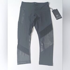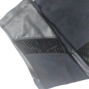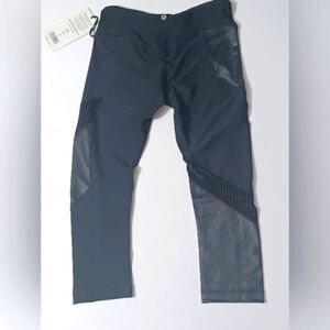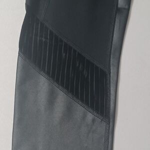 90 Degree by Refllex black shiny leggings . Features moisture wicking, 4-way stretch, coin pocket. shiny and velvet patch design. 24-in waist, 25" inseam.