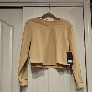 90 Degrees By Reflex Irish Cream Cropped Fleece Sweatshirt NWT