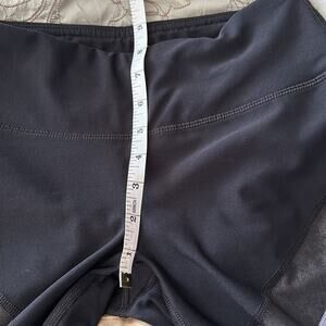 Color blocking feature on the front of leg, solid black at the back. Small pocket in front to hold small item(s). Mesh on the leg as well. In great used condition. No flaws or damage to note.