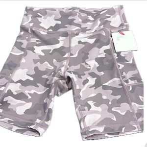 Stylish Lavender/Mauve Camouflage Biker Shorts with Pockets. These trendy biker shorts feature a modern camouflage print in shades of lavender, mauve, and light grey, with the actual color being slightly deeper than what appears in the photo. They have a comfortable high-rise waistband, a mid-thigh length, and practical side pockets. Perfect for workouts, casual wear, or a fashionable athleisure look!